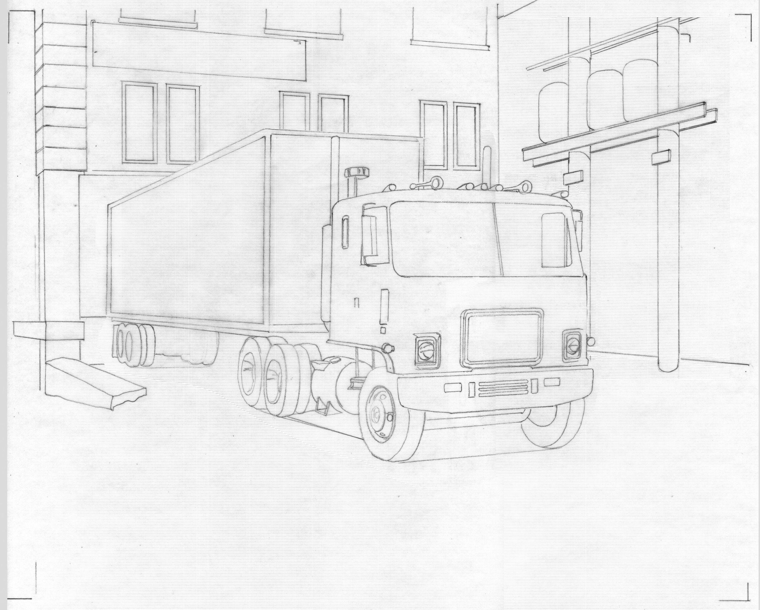 This will be another nostalgia piece featuring a GMC Astro 95 parked at a depot in the early 70's. I love the bygone cabovers from the golden era of trucking. I plan to do this one with markers and coloured pencils. 12.5" x 10"